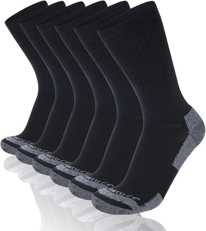 10. Heatuff Mens 6 Pack Crew Athletic Work Socks With Cushion- For All Seasons
