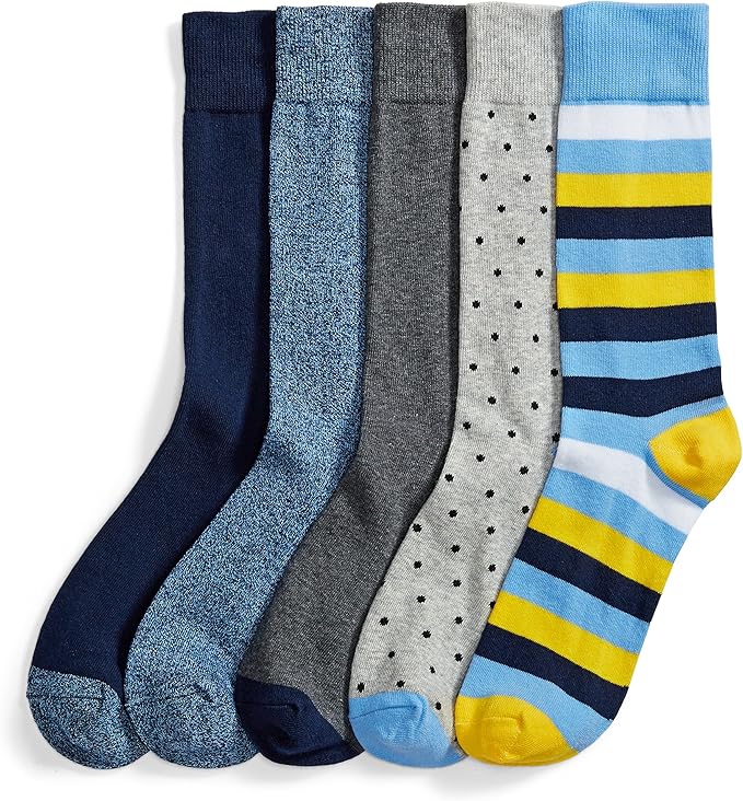 1. Goodthreads Men’s 5-Pack Patterned Socks- Soft And Light Weight